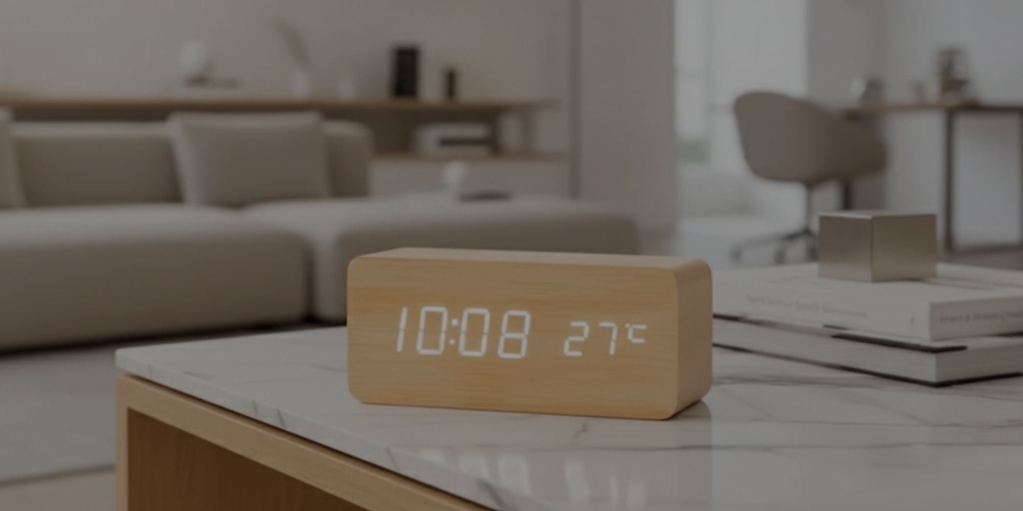 Relógio de Mesa Digital Despertador Wood Lumi Homi
